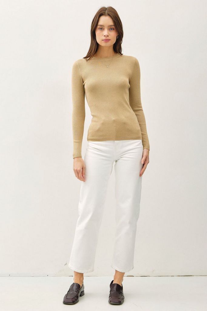 BASIC PULLOVER LONG SLEEVE RIB KNIT SOLID TOP