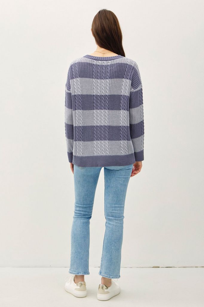CHUNKY CABLE KNIT OVERSIZE CUT STRIPED SWEATER
