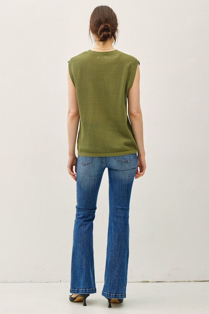 ULTRA LIGHTWEIGHT, KNIT VARSITY STYLE VEST W/ RIBBING DETAILS AT SEAMS