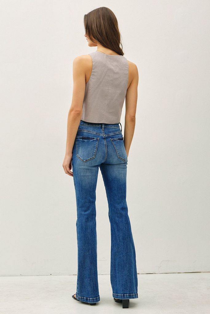 LIGHTWEIGHT, PINSTRIPED COTTON VEST TOP W/ TIE FASTENING DETAILS